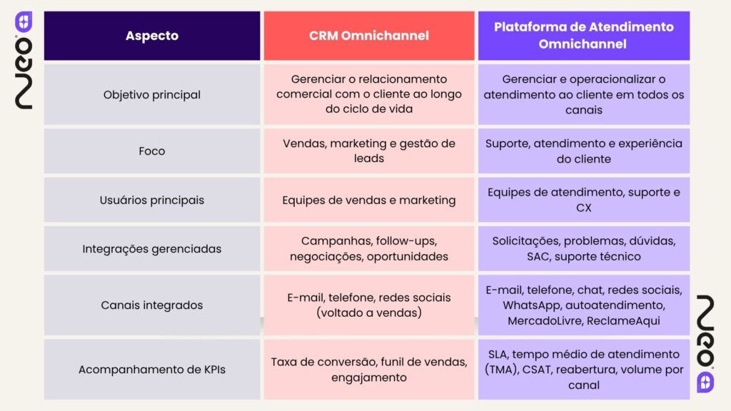 Comparação entre CRM omnichannel e Plataforma de Atendimento omnichannel
