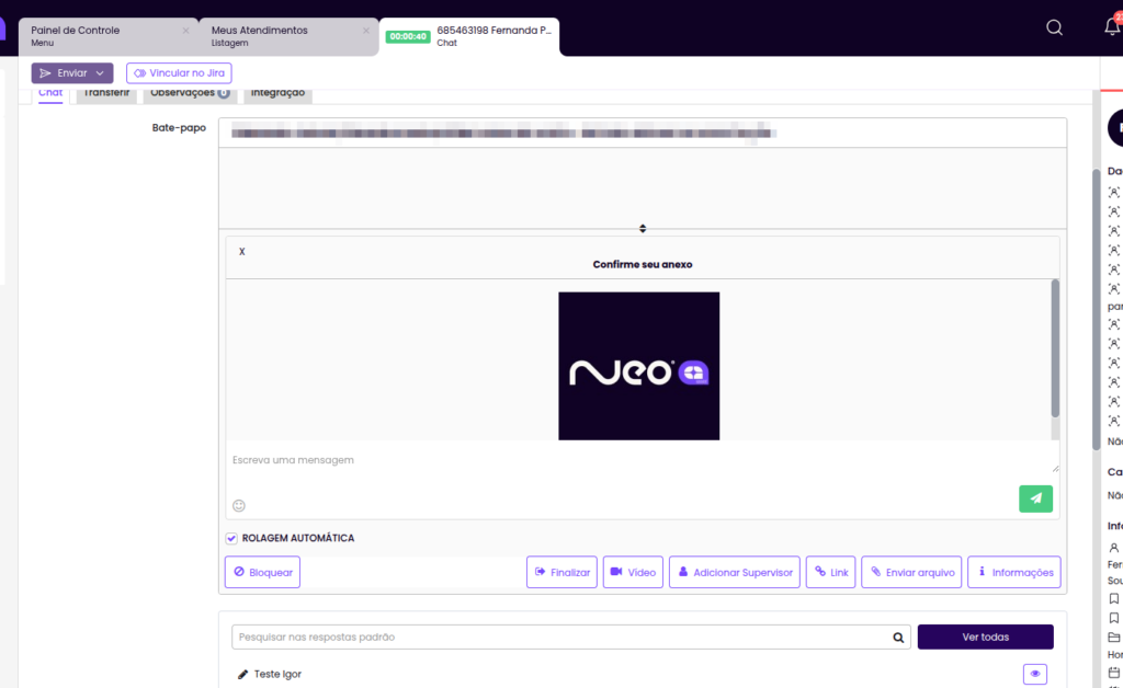 No atendimento via chat, cada segundo conta. Agora, seus agentes conseguem colar imagens diretamente no campo de mensagem usando Ctrl + V, sem precisar procurar arquivos ou usar botões de anexo.